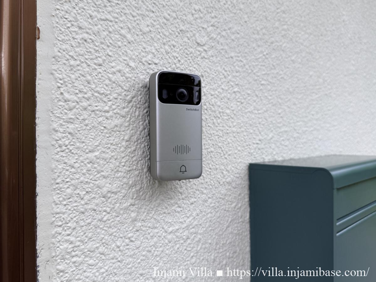 設置場所は、玄関とポストの間の壁です。少し角度のある位置ではありますが、押しやすさも考えて取り付けました。