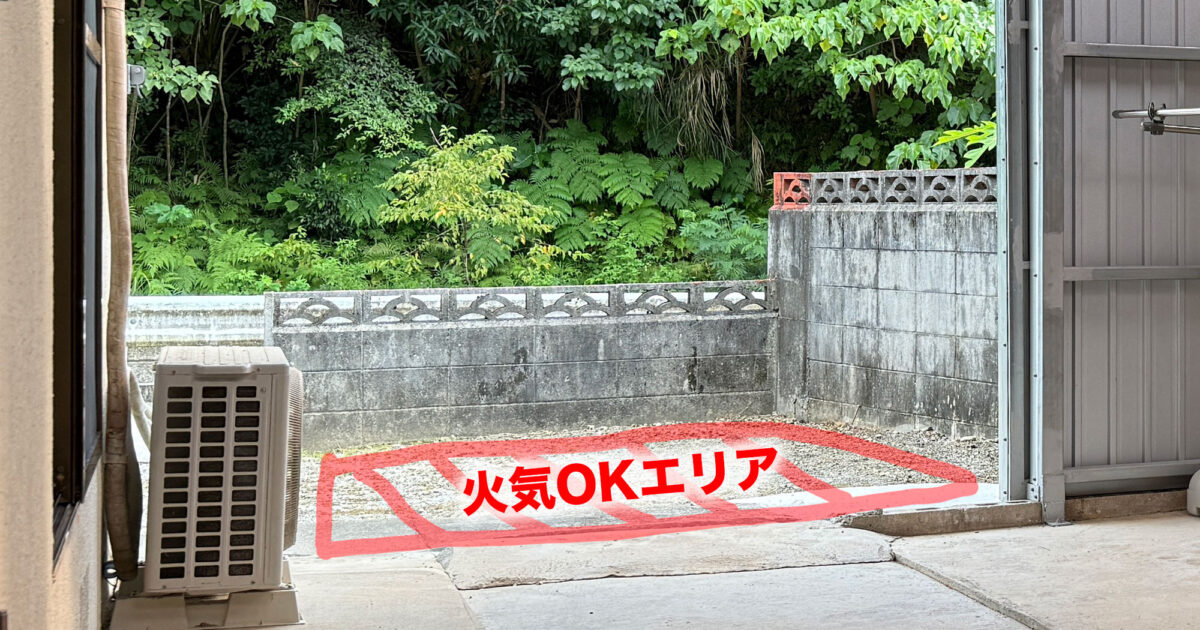 このスペースにシンボルツリーを植えて、ファイヤーピットを作って焚き火ができるようにして、キャンプやバーベキューが楽しめる場所にしたいと思っています。